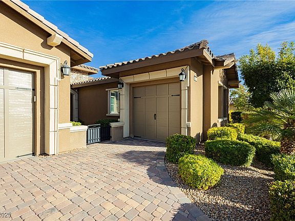 Beautiful single story home built by Toll Brothers in a gated Summerlin Community. This stunning 3 bedroom, 3 bath home features an open concept living area with a large chefs kitchen and wet bar. KitchenAid appliance, mini fridge in wet bar, gorgeous double oven and large pantry make this a show stopper. Large Primary en-suite with a spa like feel, walk-in shower, soak tub, double vanity with make up station. Gorgeous back yard with strip views, fully landscaped with plenty of space of relaxing or entertaining. Enjoy the cooler weather around the fire pit.