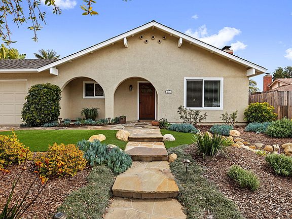Welcome to this wonderfully maintained light filled three bedroom two bath home tucked away on a quiet cul-de-sac that is located right across the street from the gorgeous Evergreen open space with an 18 hole disk golf course, trails, and more. This beautiful home is move in ready with fresh paint, attractive acid washed fireplace, duel pane windows, remodeled bathrooms, upgraded custom closets, newer carpets in the bedrooms, beautiful flooring, skylight in the kitchen, new microwave, and new heater in 2021. The front and back yard have been extensively landscaped with drought tolerant plants, an outdoor dining area with pergola, plenty of yard space for a dog, and extra storage area on the side. Garage has built in storage including washer and dryer in the sale. Walk to Brandon Elementary or Dos Pueblo High School. In addition this home is 5 min to Glen Annie Golf course, close to UCSB, pickle ball, tennis courts, and the bike trail. Inspections ready for review.