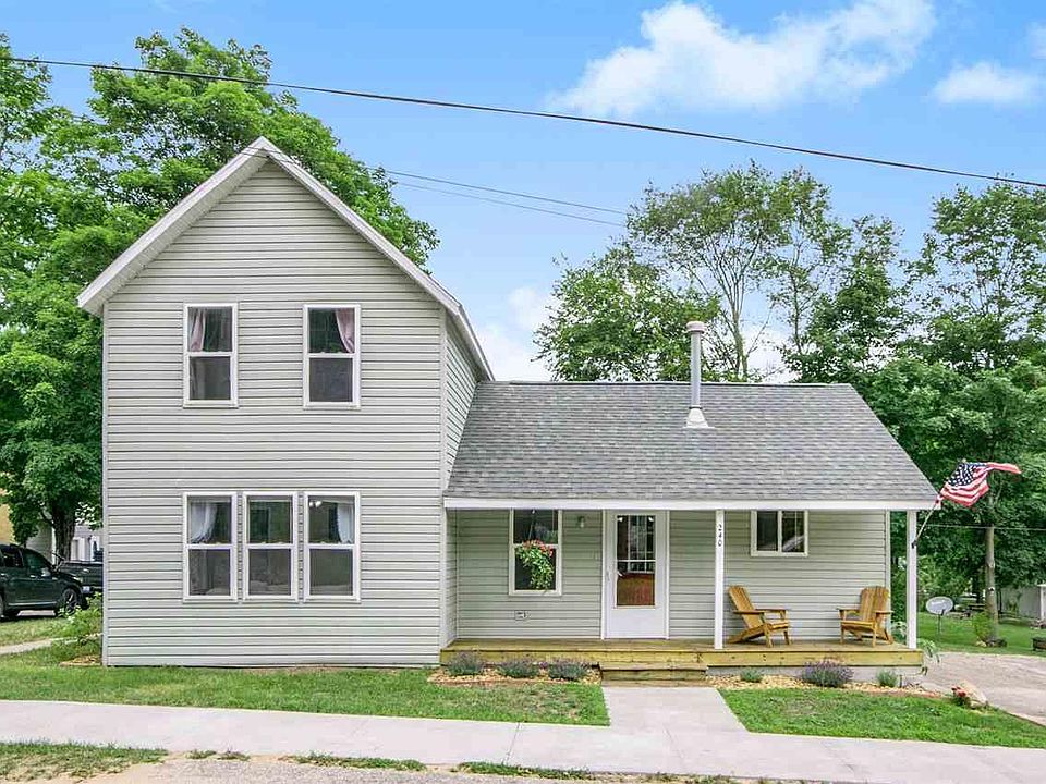 Charming 3-bedroom family home in the heart of the Village of Elberta. This corner lot home is tucked into a quiet neighborhood that sits alongside the Elberta bluffs giving you access to many hiking trails right outside your door. Main floor has a great open concept layout flowing from the kitchen and dining room into the living room space. Main floor bedroom and bathroom with two additional bedrooms on the upper level. Many updates including a brand new roof, laminate flooring, pantry, stainless steel appliances, landscaping and much more makes this a move in ready home! Positioned nicely on the lot offers you room to expand the home or add a garage. Betsie Bay views, breathtaking Elberta Bluff Lake Michigan sunsets, Betsie Valley bike and walking trail, restaurants, shops and parks are all within walking distance. Elberta is located across the bay from the City of Frankfort and off the iconic M-22 drive.