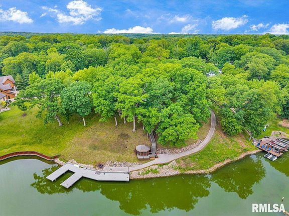 An entertainer's dream at Oak Run! With 241 feet of shoreline, this 4 Bed/2 Bath property is situated at the mouth of a cove with stunning views. Ideal location offering protection for your boat and safe swimming at the dock but not lacking access to the open water. Step inside to find an updated interior boasting tasteful finishes and a modern farmhouse aesthetic. The main level presents an open floor plan with 3 bedrooms and a full bath, ideal for everyday living. The walk-out basement offers a large family room, seamlessly connecting to large screened porch. You will find three additional non-conforming bedrooms and another full bath providing versatile space for guests. Keep the party rolling while you prep dinner in the outdoor kitchen surrounded by an expansive deck with ample space for all your friends and family. Enjoy tranquil evenings from the comfort of either screened porch or down at the dock. A gentle slope leads you directly to the water's edge, where a dedicated gazebo provides convenient storage for all your toys. Forget the stairs; a private cart path ensures effortless access to your dock, making every day on the 600-acre lake a breeze. Well maintained heated 2 stall garage also adds to the perks. As an Oak Run member, you'll enjoy access to a wealth of amenities ensuring endless summer fun. This is more than a home; it's an oasis where every day feels like a vacation! Most furnishings negotiable. Ask about boat, jet ski & Green Machine.