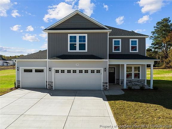 Ready for Immediate Move-In! The Benson, meticulously crafted by Furr Construction, exudes an effortless and inviting ambiance. The formal dining room connects to the kitchen which overlooks a charming breakfast area and a generously sized great room, complemented by a convenient half-bath nearby. Upstairs, discover four bedrooms and a well-appointed laundry room. The allure continues with a spacious owner's suite featuring double tray ceilings, an ensuite boasting dual vanities, a separate shower, a luxurious tub, and an expansive walk-in closet. Situated in Woodhaven, an emerging community in Hoke County just beyond the city limits of Raeford, this home comes with the added advantage of no city property taxes. Please note that interior designs and selections may vary across neighborhoods. Your dream home is within reach as soon as you obtain clearance to close. Don't miss the opportunity to make this move-in-ready gem your own! $15,000 Builder Incentive + blinds or a fridge.