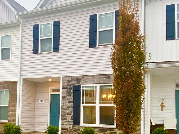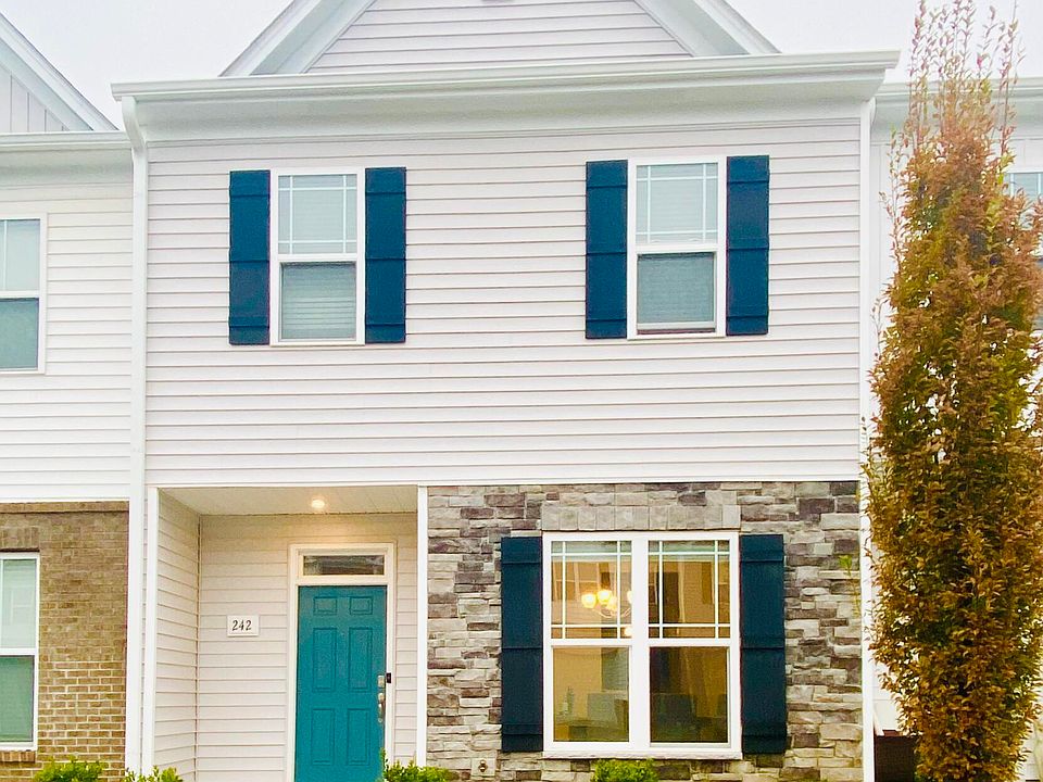 This stunning 3-bedroom, 2.5-bath townhome in Clayton, NC, built in 2021, is the perfect blend of modern style and comfort. The bright, white kitchen with stainless steel appliances and quartz countertops is a chef's dream, and the beautiful modern bathrooms offer a touch of luxury. Gorgeous LVP flooring flows throughout, while a spacious mudroom and convenient upstairs laundry add practicality. Enjoy relaxing evenings in the formal dining room, expansive living room or unwind in the owners suite, complete with a walk-in shower and large closet. With alley access and a dedicated parking spot, this home is ready to welcome you. Schedule a showing today and make it yours!