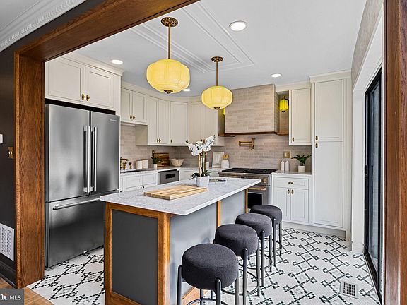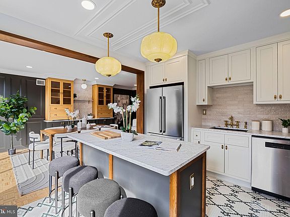 Welcome to this exquisitely reimagined residence in Society Hill, originally designed by Louis Sauer and thoughtfully renovated to offer the perfect balance of modern luxury and timeless character. This four-bedroom, three-bath home with private parking showcases elevated craftsmanship and refined finishes throughout. As you enter the foyer, you’re greeted by a bright and expansive living area featuring 11-foot ceilings, classic mill work, intricate custom moldings, a marble-surround fireplace, and beautifully preserved parquet oak floors. Floor-to-ceiling windows flood the space with natural light and frame serene views of the tree-lined street. Just beyond the living room, a patio overlooks the lushly landscaped gardens, creating an inviting space for morning coffee or evening relaxation. The gourmet kitchen is a showpiece of design, appointed with premium stainless steel appliances, inset cabinetry, Carrara marble countertops, and a custom-tiled range hood. An adjacent dining area with custome built-in shelving and cabinetry provides a warm and elegant setting for entertaining. Upstairs, the tranquil primary suite offers a generous walk-in closet and a spa-like bathroom featuring a walk-in shower and a freestanding soaking tub. Two additional bedrooms and a full hallway bath complete this level, blending comfort with thoughtful design. The lower level is equally impressive, offering a spacious bonus room with over-sized windows overlooking the rear patio and garden—perfect for a media lounge or entertaining space. This level also includes a mudroom/bar area and an additional full bathroom for convenience. A gated parking space directly behind the home provides ease and functionality in this coveted neighborhood. Nestled in the heart of a historically preserved community, residents enjoy access to beautiful green spaces like Three Bears Park and Independence Park. All of this, just steps from acclaimed restaurants, charming cafés, Ritz and PFS theaters, and a short 15-minute drive to the airport.