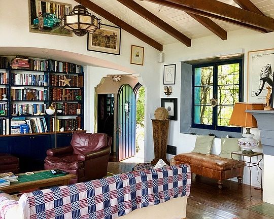 Artistic, beautifully maintained Mediterranean home with five bedrooms, six and half baths on three levels with ocean views and a large yard. Home has the look of a 1920's Spanish revival, but was built in 2000 (designed by Venice architect Lewin Wertheimer). Features include a very large family room, open kitchen leading to loggia, which acts as a second living/dining space. Gym, walnut floors, two fireplaces, custom tile work, his and her separate master bathrooms, security system, parking for six cars. Rental comes with two days of housekeeping and two days of gardening services per week. Price includes all utilities/internet. On one third of an acre spanning two streets.