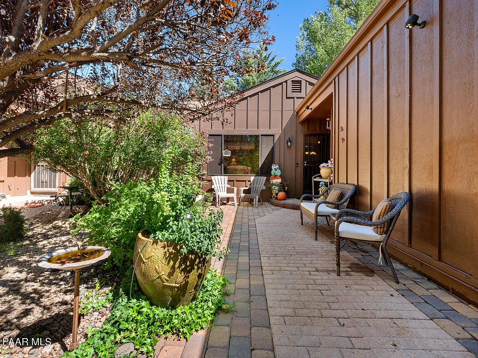 Nestled just minutes from the Courthouse Square and surrounded by the serene beauty of Hidden Valley Ranch's towering pines, this stunning 2-bedroom, 2-bath townhome offers 1,182 sq. ft. of meticulously updated living space.As you enter, you're greeted by a picturesque paved stone patio, creating a private, sheltered garden perfect for quiet moments. Inside, soaring vaulted ceilings with skylights illuminate the open Great Room, which is anchored by a cozy corner gas stove--ideal for those chilly winter nights.The kitchen is a chef's dream, offering rich granite countertops, Beautiful wood cabinets, sleek stainless steel appliances (including a gas range), and a charming breakfast nook. Hardwood floors flow seamlessly throughout the home, extending into both spacious bedrooms.The primary suite offers a peaceful retreat with direct access to a private deck, nestled beneath the trees and overlooking a peaceful seasonal stream. The en-suite bath features a granite vanity with a hammered copper bowl sink, all illuminated by another skylight.Throughout the home, oil-rubbed bronze hardware adds a sophisticated touch to the warm and cozy design. With its ideal location and exquisite finishes, this townhome offers the perfect blend of comfort and style--making it the ideal place to call home.All furniture is available for sale outside of escrow. Sounds great to be able to ''move right in.''