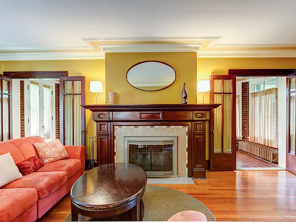 Ideal Highland Square location! This all brick center hall Georgian Colonial boasts many updates inside and out, yet retains many original features unique to the home. Spacious living room with wood burning fireplace, detailed mantle and built in bookcases. French doors lead to solarium with original tile floor and fireplace. Large dining room has fireplace, wainscoting and built in china cabinet. Kitchen has been completely renovated with cherry cabinets, granite countertops and stainless steel appliances. Separate pantry with floor to ceiling cabinets. Bonus room adjacent to kitchen can be used as informal dining area or home office. A half bath completes the first floor. An original leaded glass casement window graces the stair landing. Large master bedroom features fireplace, sitting area, his/ her closets, and has attached full bath. Second floor bath is completely renovated with new plumbing. Two more bedrooms complete this floor, one with separate staircase and entrance from first floor (former maids quarters). Third floor offers sitting area, two huge bedrooms with keyhole dormer windows, and updated bath with original claw foot tub. This home features 9 ceilings, hardwood floors, and exquisite crown molding throughout. Screened in porch off living room leads to stone patio with built in fire pit. Huge backyard with mature, well manicured landscaping and storage shed. All exterior wood and shutters have recently been repainted.