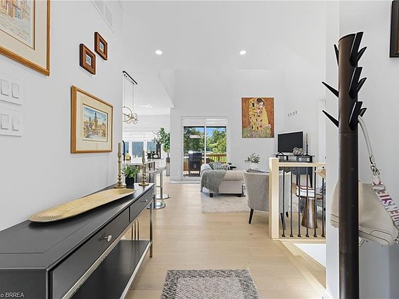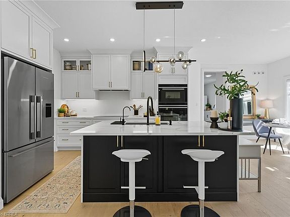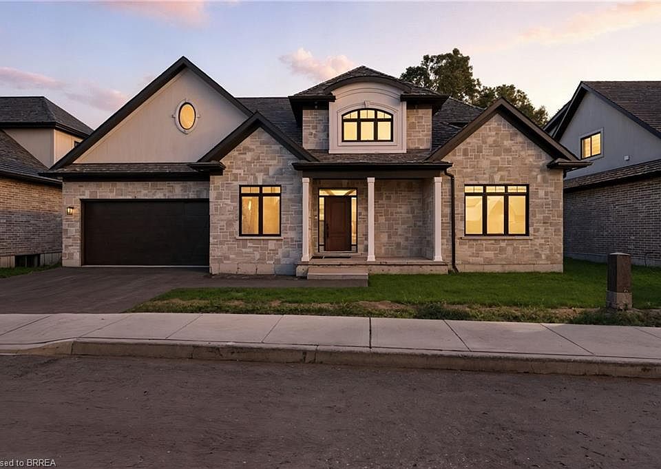 Nestled in the prestigious Lions Park Estates community of Brantford, this executive all-brick residence combines timeless sophistication with modern comfort. Perfectly positioned on a quiet cul-de-sac, this home is an ideal retreat for those seeking luxury living in a private setting. Step inside to soaring ceilings, wide-plank engineered hardwood flooring, and sun-filled open-concept living spaces designed for both everyday living and entertaining. The chef-inspired kitchen is a true showpiece, showcasing white cabinetry, quartz countertops, designer hardware, an undermount sink, a breakfast bar, and a walk-in pantry. The main floor features a serene primary suite complete with a spacious walk-in closet and a spa-like 5-piece ensuite featuring a glass shower, soaker tub, and dual vanities. A versatile office/den with garage access, powder room, and convenient laundry area complete this thoughtfully designed level. Upstairs, the loft offers two oversized bedrooms and a sleek 4-piece bathroom, providing comfort and privacy for family or guests. The partially finished lower level with soaring ceilings offers endless possibilities, already featuring a sauna and Nordic-inspired spa bathroom. Step outside to enjoy seamless indoor-outdoor living with a covered wooden deck, and a cold plunge tub—perfectly complementing the spa-like amenities of this home, perfect for year-round relaxation or entertaining.
