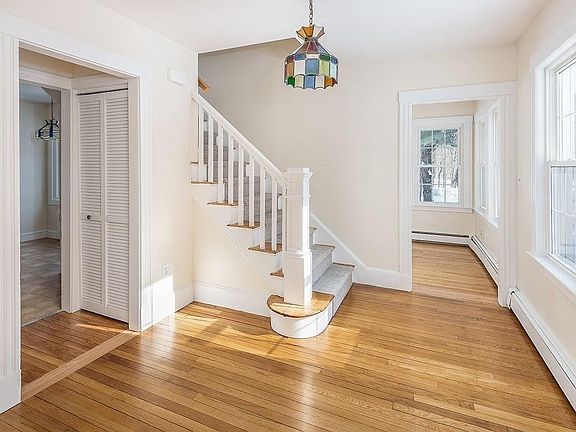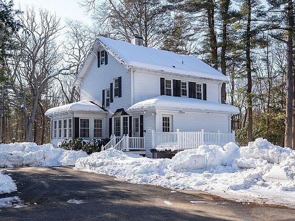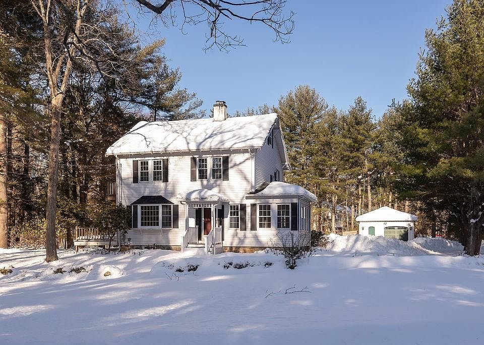 Nestled into a corner lot along a scenic road with stone walls, stream, forest views, and open expanses, this is home. Enjoy indoor-outdoor living in a classic colonial, 3 bed, 2 bath home. 2018 septic. 2019 composite front entry steps/porch, neutral painted interior throughout, first floor hardwoods refinished, second floor carpet replaced. Mudroom side entry, includes laundry, storage closet & access to back deck. Kitchen with breakfast nook, opens to large dining room with generous wood side deck. Front living room has wood burning stove insert in fireplace. First floor completed by sunroom/office, front hall and closet, and full bath with roll-in shower. Master bedroom enjoys private balcony and custom walk-in closet. Full bath and the two secondary bedrooms complete the second level. Walk-up attic sports wood floor & 2019 insulation. Unfinished basement. Both offer storage and potential. Ample parking. Detached 1-car garage with work area. Now to make it yours.