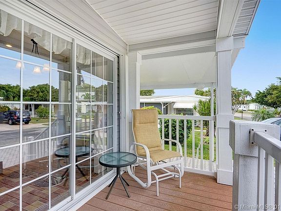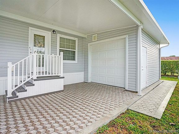 ULTRA CHIC DOUBLE WIDE 2012 manufactured home with a real 1 CAR GARAGE and a beautiful paved CARPORT and parking. The house features HIGH VAULTED CEILINGS, OPEN and SPLIT floor plan, huge master suite and TWO BALCONIES. Will sell all FURNISHED AND TURNKEY with everything you need. GOURMET KITCHEN with lots of cabinets, stainless steel appliances & beautiful countertop. Large master suite with walk-in closet, jet tub, separate shower and double sink. Tile and wood floor throughout the entire house, washer & dryer inside. Third bedroom is a den or office with direct access to the back balcony. Lots of privacy, no neighbor in the back. Close to the pool and the game area, low maitenance fees, you own the land, gated community with clubhouse, tennis, heated pool and activities. Small pet ok