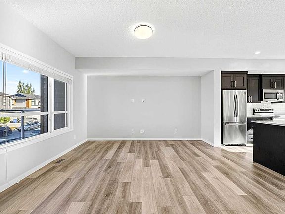 Discover modern comfort and style in this bright and spacious 3-storey end-unit townhouse in the heart of Harvest Hills. Thoughtfully designed for both functionality and everyday living, this home combines open-concept spaces, plenty of natural light, and premium finishes throughout. The entrance level features a well-sized Flex Room, ideal for a Home Office or Study, and a Double Attached Garage providing secure parking and additional storage. The Main Level boasts an open-concept layout with 9-ft ceilings and vinyl plank flooring throughout. The sunny east-facing Kitchen and Dining Area features a central island, Quartz Countertops, Stainless Steel Appliances, and ample Cabinetry. The spacious Living Room opens to a private Balcony with a gas hookup, perfect for outdoor entertaining, while a convenient 2-Piece Bathroom completes the floor. The Upper Level offers a generous Primary Bedroom with a large Walk-In Closet and a 4-Piece Ensuite featuring a double vanity and Quartz countertops. Two additional Bedrooms, a full 4-Piece Bathroom, and a Laundry Area with extra storage complete this level. Located in a vibrant community, this townhouse offers exceptional amenities including an apple orchard with a rentable garden box, a pickleball and basketball court, and easy access to walking trails beside the pond, green spaces, and bicycle paths. It’s also close to shopping, T&T Supermarket, Home Depot, schools, restaurants, and the Calgary International Airport, with convenient access to Deerfoot Trail. Don’t miss the opportunity to call this beautiful home yours—schedule a viewing today!