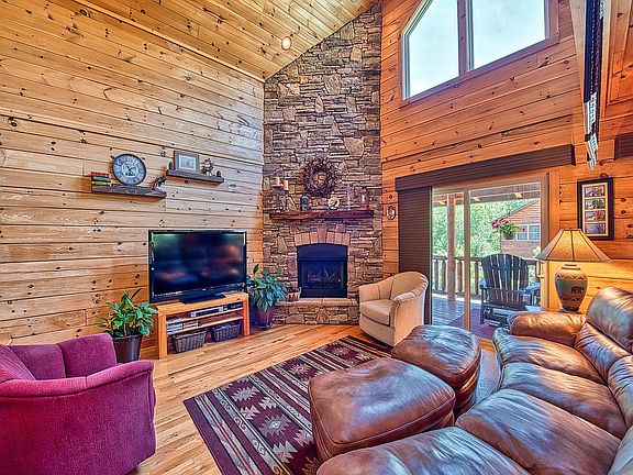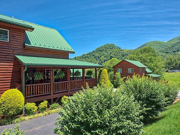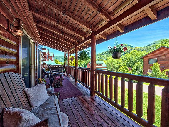 Log home with wrap around covered porch w/attached 1car garage room above w/heat/acparking for 3 cars in driveway.
