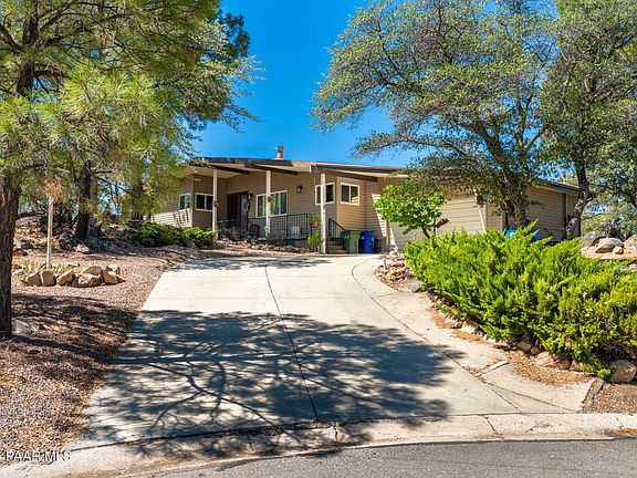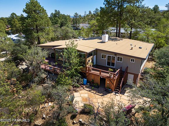 Recently remodeled with NUMEROUS UPGRADES (see documents tab for full list), this 3 bedroom, 2 bathroom, 2,028 square foot Prescott gem is located just minutes from the Courthouse Square and Thumb Butte. Nestled on a quiet cul-de-sac, the home feels like a forest retreat with pines, boulders, and BREATHTAKING VIEWS OF THUMB BUTTE. Floor-to-ceiling windows, skylights, and a brick-hearth wood fireplace create a warm, light-filled interior. Upgrades include a new roof, new AC and furnace, and a new deck--perfect for entertaining or soaking in the views. New solar tubes were installed in the bathroom and new skylights in the kitchen when the roof was replaced. Two levels of indoor-outdoor living, a private primary suite deck, and a flagstone courtyard make this home an entertainer's dream and a nature lover's escape. Sale includes parcel #108-05-039A. Schedule your showing today!