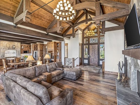 Set at the end of a quiet road in Summit Estates, this newly completed mountain home offers rare seclusion and direct access to backcountry trails—perfect for snowmobiles, ATVs, or peaceful hikes. Designed for those who value both comfort and adventure, it features one of the finest toy garages on the market for all your mountain gear. Inside, an open floor plan connects the custom Amish kitchen, dining area, and great room—ideal for family gatherings, lively dinners, and fireside conversation. Vaulted ceilings with exposed wooden beams and dramatic metal collar ties highlight the great room, centered around a real masonry wood-burning fireplace for that classic Colorado warmth. A wall of windows opens the dining area to a spacious second-story deck, framing breathtaking views of the mountains and the Continental Divide. The main-level owner’s suite offers ultimate convenience with a spa-style bath, ceiling-mounted rain shower, soaking tub, and a large walk-in closet. The lower level is built for fun, featuring a custom wet bar, game area, and family room—perfect for entertaining after a day on the trails. There are two ensuite bedrooms on the lower level, plus an additional upstairs bedroom for guests during epic powder weekends. An oversized three-car garage with EV charging and a lower-level toy garage provide ample space for all your motorized and non-motorized adventures.