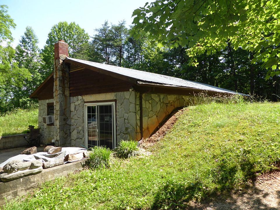 3 Acres! This is unique property offers total seclusion and privacy. The home is designed so that another story or more could be built on the existing foundation. Stone exterior with a metal roof. 12x11 shed. Just 10 minutes to Rocky Mount. Heating source is wood stove.