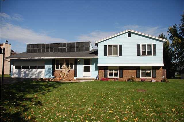 1620 sq ft Side Split open layout with 3 bedrooms, 1 ? baths in SPENCERPORT SCHOOL DISTRICT! Save on heating bills with Solar Heat! Living room PLUS family room. Dining area off kitchen with sliders to deck. Appliances included! Possible 4th bedroom. Large yard with above ground pool (new pump 2012, new liner 2011 and new solar cover 2012). Don't miss this one!