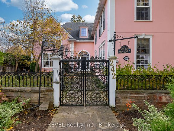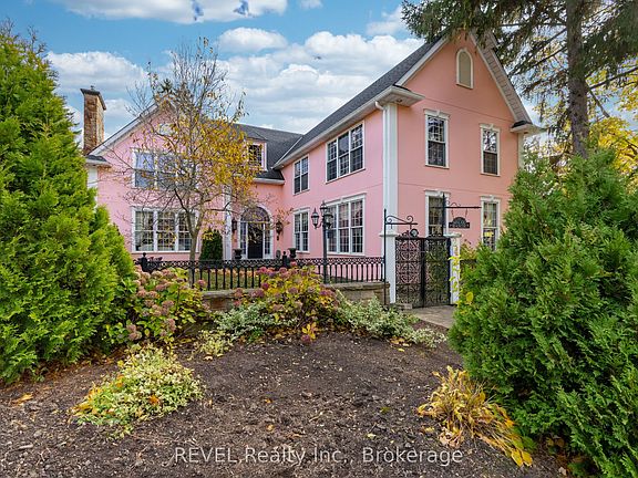 One of Niagara-on-the-Lake's most distinguished estate properties - The Simcoe Manor. Nestled in the heart of Old Town, this iconic residence embodies timeless elegance and historic charm. Spanning over 5,000 square feet of impeccably finished living space, the manor features seven bedrooms and seven bathrooms, offering both grandeur and comfort in equal measure.Set on over half an acre of lush, landscaped grounds, the estate is surrounded by mature trees, vibrant gardens, and a serene stream that enhances its sense of privacy and tranquility. The outdoor oasis includes an inground pool, charming pool house, and multiple spaces for sophisticated entertaining or peaceful retreat. Formerly operated as a luxury inn, The Simcoe Manor retains its welcoming character with guest quarters and refined architectural details that speak to a bygone era of craftsmanship and grace. Every corner of this property tells a story-of heritage, hospitality, and the enduring beauty that defines Niagara-on-the-Lake.