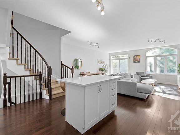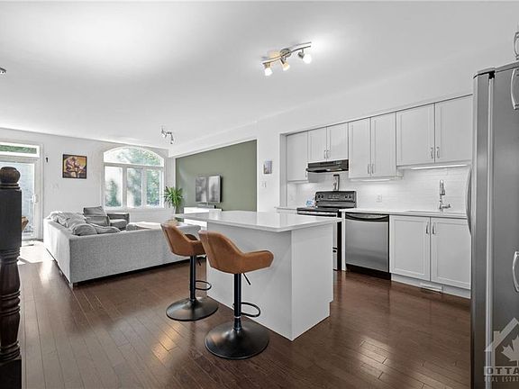 Welcome to this pristine townhome, perfectly situated next to a peaceful walking trail & just steps from nearby parks. The open-concept main floor featuring gleaming hardwood floors & large windows offers a bright & welcoming living space flooded w/ natural light. This chef’s kitchen offers upgraded appliances, new Quartz countertops, plenty of cabinet space while being surrounded by your dining room, cozy living space & private balcony. Main floor also offers bathroom & inside access to your garage. Upstairs Primary bedroom is a retreat of serenity with lush views, complete with an ensuite spa-like bath. Two additional well-appointed bedrooms share an equally elegant bathroom. Finished basement offers spacious rec room with a WALK OUT basement to your private backyard. NEW PVC fence being installed on both sides. Location is A+, you are minutes to Parks, schools, trails, Farmboy, restaurants & a quick commute to Downtown Ottawa & the Airport making the convenience truly unmatched.