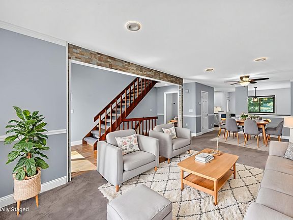 Fantastic townhouse features stylish upgrades, blending modern design with functional living. The open floor plan gives you plenty of options for furniture layout and everyday use. The remodeled kitchen is a standout feature designed with crisp white cabinets, granite countertops, a tile backsplash, and stainless steel appliances. Just off the kitchen, the dining area boasts a chair rail, tile flooring, recessed lighting, and direct access to the back deck overlooking a peaceful wooded view. The living/dining room combination provides even more versatility for entertaining or relaxing. Special touches include stone-look accents, recessed lighting, and multi-function fixtures throughout. Upstairs, the primary bedroom connects directly to the full bath with 2 sinks, while the second bedroom offers cozy carpeting and recessed lighting. The lower level includes a laundry room plus an extra space-perfect for storage, a home office, or hobby area. Updates include a new slider, several new windows, an updated furnace. Central Air and a 1 car garage add convenience while both front and back decks extending your living space outdoors. Set in a central location close to shopping, dining, and major routes, this condo offers the best of comfort, style, and accessibility. With so many thoughtful updates and flexible spaces, this home truly has it all!