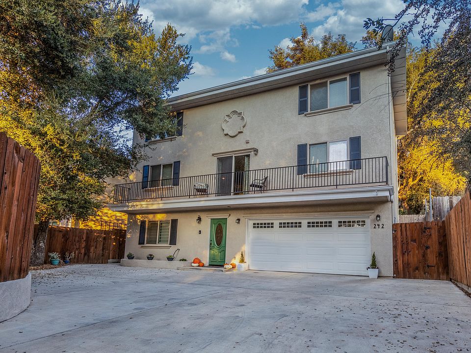 Enjoy Your own piece of Tuscany right here in Oak View. Don't miss out on this fabulous Mediterranean style home of newer construction on a private flag lot. This lovely home features a super functional floor plan with a bedroom and bath with additional private entrance off the first floor providing loads of options as a private bedroom or home office. The 2nd floor living area boost soaring ceilings, a gorgeous fireplace and mantel, kitchen with center island, stainless appliances and granite counters and lovely balcony to enjoy evening sunsets. Upstairs you will find a master bedroom with large walk in closet and oversized master bath. This floor also features a beautiful hallway bathroom with travertine tile, walk in hallway closet and loft which could be enclosed as a 3rd bedroom. Additional upgrades include gleaming wood floors and AC. The rear yard and rear balcony provide additional outdoor living space surrounded by majestic oaks. Enjoy the convenience and mild temperatures of Oak View with easy access to the Ojai bike trail, hiking and proximity to Ventura beaches.