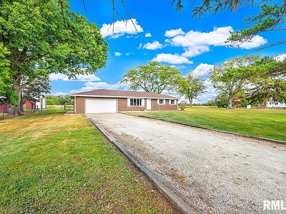 All-brick ranch on 5.05 acres in the Metamora High School District. Main level offers 2 bedrooms and 1.5 baths, along with a spacious 4-season room featuring a cozy wood-burning stove—the perfect spot to enjoy morning coffee while overlooking the land. The finished basement adds a rec room, office, and full bath, giving you flexible space for guests, hobbies, or even a potential 3rd bedroom. Outdoors, you’ll find 2 sheds, a 30x45 outbuilding, and a fenced portion of the property—ideal for pets, livestock, or gardens. Part of the acreage is currently planted in soybeans, with a verbal agreement in place to split seed cost and crop profit with a local farmer. The flat, open acreage offers endless options, from adding pastures or gardens to simply enjoying wide-open space. Roof replaced in 2018 and geothermal system installed in 2021. Home is being sold as-is, and seller is willing to include a home warranty with a strong offer. Whether you’re looking for room to spread out, space for animals, or a place to create your own homestead, this property offers countless possibilities. Showings begin October 1st.