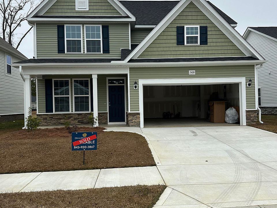Introducing The Jordan, the largest home offered in the Spring Oaks community, designed to provide maximum space and comfort for your family. As you enter, you are immediately welcomed by an open concept dining room that flows seamlessly into a spacious kitchen, ideal for both casual meals and entertaining guests. Moving into the living room, you’ll be greeted by soaring 16+ foot cathedral ceilings that create an expansive, airy atmosphere. The main level also features the primary bedroom, thoughtfully located for privacy, and includes a walk-in closet that conveniently connects to the laundry space for added ease. Upstairs, you'll find three generously-sized bedrooms with high vaulted ceilings that add to the home’s sense of openness. The second level also features a full bathroom and an open loft area that overlooks the living room, perfect for a home office, playroom, or additional lounge space. There is also a pull-down access to the attic, offering plenty of storage options. Throughout the home, you’ll enjoy upgraded tile flooring in the bathrooms, comfort-height toilets, and upgraded Mohawk laminate flooring in the common areas. The home is also equipped with an irrigation/sprinkler system to keep. The Jordan is the perfect home for those seeking modern convenience and a welcoming environment. Spring Oaks is a beautiful new home community offering natural gas homes, blending comfort with sustainability. Ideally located near Historic Downtown Conway, residents enjoy easy access to the Riverwalk, local restaurants, shops, and the stunning coastal beaches. It’s the perfect spot for modern living with the convenience of nearby attractions. The Jordon is completed.