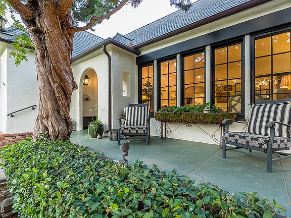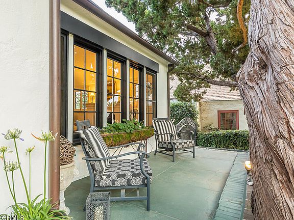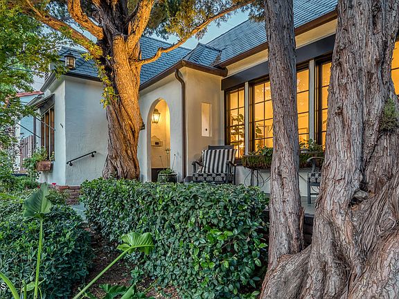 This enchanting storybook English is located in one of Altadena's most coveted neighborhoods adjacent to Christmas Tree Lane's canopy of deodars. Featuring 3 spacious bedrooms and 2 remodeled baths and an office/den, this home is a wonderful blend of traditional charm and modern sensibilities. Instantly welcoming with its meandering brick pathway lined with tree roses, seasonal bulbs and agapanthus, the front garden was featured as an Altadena Heritage Golden Poppy Award winner. The yard includes species of pomegranate, apricot and Japanese maple trees as well as a large grassy area, soothing water feature, window boxes overflowing with cascading white geraniums and a spacious front porch shaded by a pair of twisted cypress. Upon entry, your eyes are immediately drawn to the distinctive coved ceilings of the delightful living room, a wall of French windows looking out to the front garden and a center fireplace flanked by two additional windows. Dark stained hardwood floors contrast beautifully with the freshly painted and light-filled interior. The adjoining dining room has French doors exiting to a covered side porch providing an extension to the outdoors and a place to linger. The updated kitchen with granite countertops, artful tile backsplash, newer stainless appliances including double ovens and farmhouse sink, overlooks and exits to the rear yard and also houses the laundry area. The private spaces include a main hallway housing the primary bedroom which has been thoughtfully designed with a wall of fabulous built-ins and spacious double closets, a second generous bedroom and a large remodeled full bath with custom tile and double sinks. A third bedroom with ensuite bath, as well as an additional room utilized as an office/den with stairs to a California basement complete the floorplan. The rear yard is peaceful and serene. A variety of citrus trees dot the space which features low maintenance decomposed granite, a tiered fountain, outdoor fireplace and charming brick patio. The long driveway culminates in a detached 2 car garage with plenty of storage and with its high ceilings offer the potential of becoming an ADU. Other upgrades include extended life roof, copper gutters, new electrical, new interior and exterior paint, landscape lighting, automatic sprinklers, Nest thermostat and Ring security. Cherished for many years by the current owners, this property is a wonderful place to call home.
