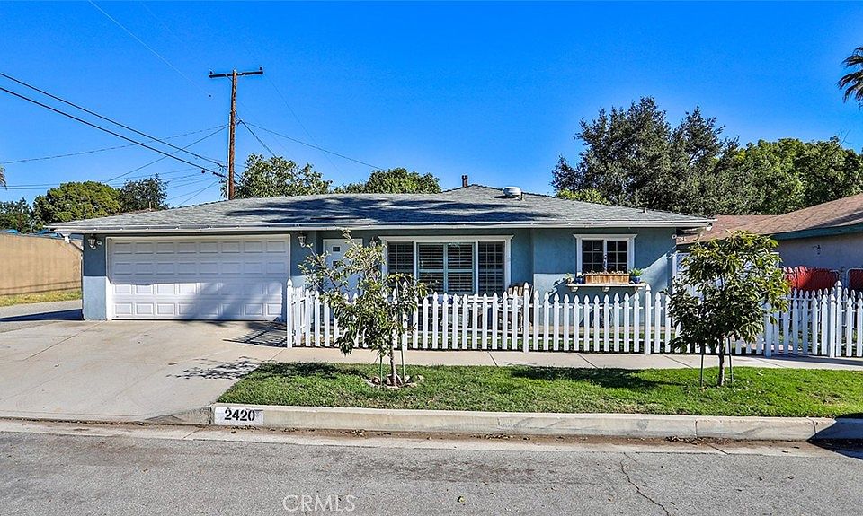 CHARMING ONE-STORY, OPEN-CONCEPT HOME, COMPLETE WITH A WHITE PICKET FENCE! This all-American home is smaller in square footage but has everything. Simple, functional, and stylish. And storage galore with not an inch of space wasted. Completely remodeled with the popular “modern industrial farmhouse” style throughout! The beautiful, modern front door opens into the great room w/decorative fireplace, plantation shutters, window seat w/storage, industrial wood shelves, & recessed lighting. The kitchen has great design and function. Large kitchen island w/seating, statement lighting, and gorgeous walnut butcher block countertop on both the island and surrounding cabinet countertops. Abundant storage w/metal piping & wood open shelving, industrial pipe racks for hanging your coffee mugs, self-closing large drawers & cabinets, including a pantry, corner cabinet w/lazy Susan, and a pull-out spice rack. Stainless steel appliances, farmhouse sink, white subway tile backsplash, and pendant & recessed lighting. Nice-sized bedrooms include ceiling fans w/lights and closet organizational systems. The bathroom features a tub/shower, floating vanity w/wide sink, and industrial wood open shelves & towel racks. Two closets in the hallway provide additional storage. Vinyl wood flooring, dual pane windows, crown molding, & wide baseboards throughout. Easy & DIRECT ACCESS from the great room to the TWO-CAR ATTACHED GARAGE w/roll-up garage doors. The laundry area is conveniently located just steps from the house/garage entry. Low maintenance front, side & backyard. Wonderful location in the heart of downtown La Verne…enjoy watching the 4th of July Parade from your own front porch, and take an easy walk or bike ride to restaurants, shops, parks, ULV & schools.