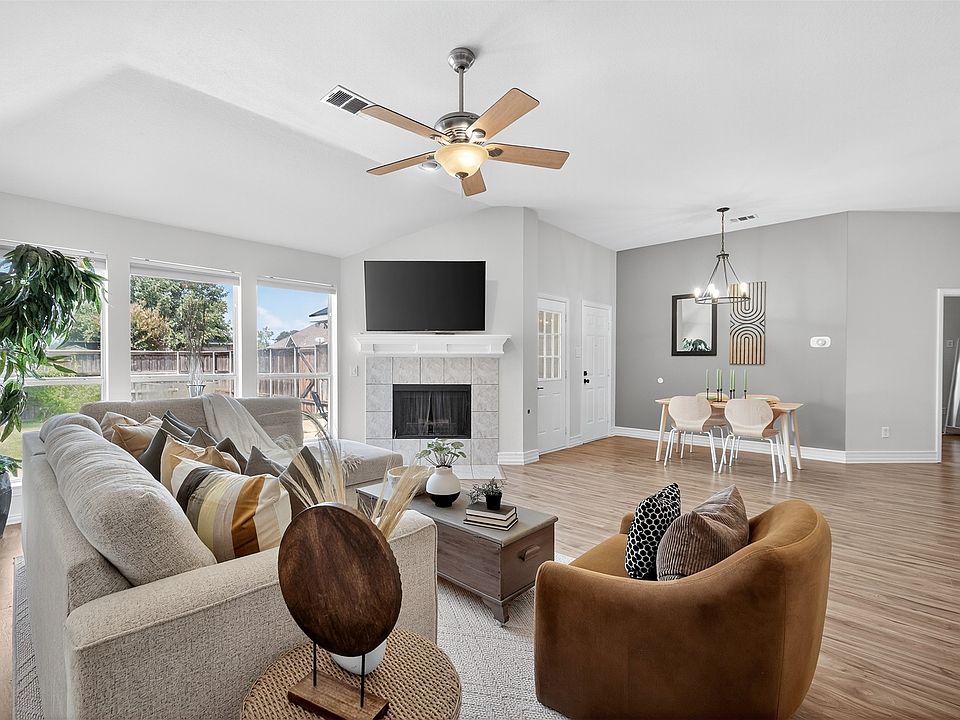 Welcome to this beautifully updated home combining modern upgrades with timeless charm in a desirable Rockwall neighborhood. From the moment you walk in, you’ll notice the open floor plan, tall ceilings, and abundant natural light pouring through oversized windows. The heart of the home is the kitchen, highlighted by a skylight that brightens the space year-round. Featuring granite counters, stainless steel appliances, a center island, and a spacious walk-in pantry, it flows seamlessly into the dining and living areas—perfect for entertaining or family gatherings. The living room offers comfort with a cozy fireplace, expansive windows, and electric blinds for privacy at the touch of a button. New solar window screens further enhance energy efficiency. This home is move-in ready with major updates already completed: a brand new roof (2025), new garage door (2025), and newer water heater (2024). A dedicated home office with French doors provides the perfect space for remote work or study. The private primary suite includes a double vanity, separate shower, soaking tub, and an oversized walk-in closet with built-ins. Secondary bedrooms are generously sized and ideal for family or guests. Updated bathrooms feature modern fixtures and finishes. Additional highlights include new lighting fixtures, fresh paint, and durable wood-look flooring throughout. The fenced backyard offers plenty of room to relax, garden, or play under a mature shade tree. Located close to top-rated schools, shopping, dining, and Lake Ray Hubbard, this home blends style, comfort, and convenience—all with peace of mind from recent updates.