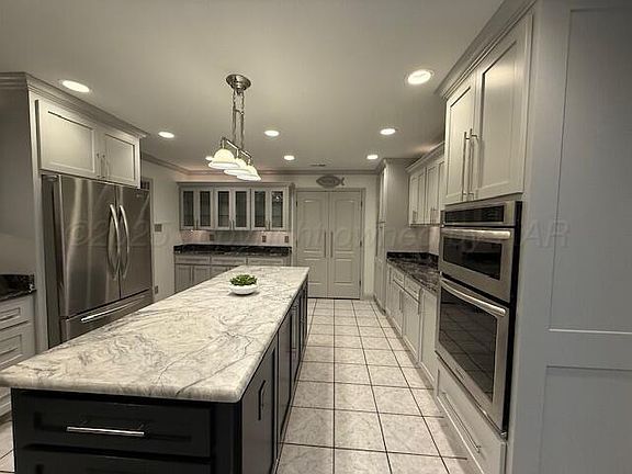 The kitchen is a showstopper, designed for both everyday living and entertaining with an abundance of cabinetry, granite countertops, and a large island with extra seating. A formal dining room just off the kitchen provides the perfect setting for family meals and gatherings.