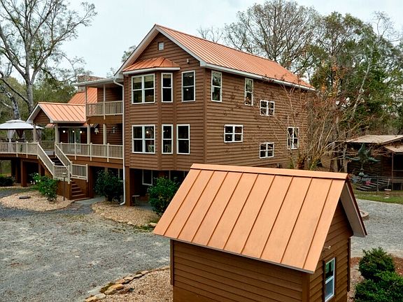 Ogeechee River Lodge is an incredible property along the banks of the Ogeechee River! This property features nearly 2,000 foot of river frontage, with incredible long range views. One of the larger lots along the Ogeechee River, this tract boasts just over 8 acres, and offers beautiful aesthetics, room to roam, and much more. The scenery around the property consists of beautiful, mature hardwoods & oak trees. These trees provide a peaceful canopy throughout the year. The drive way to the home is lined with pretty magnolia trees, mature hardwoods & oaks, and open space amongst the river bank. The 4,200 square foot, 3 bedroom/4 bath home is sure to impress. Large porches & decks give elevated views of the Ogeechee River, and will offer incredible hosting & gathering opportunities for friends and family. Once you enter the home on the main level you will find vaulted ceilings, custom fireplace, hardwood flooring, and beautiful river views throughout the home. The kitchen boasts new granite countertops, stainless steel appliances, 5 burner KitchenAid gas range, & more. A new central heating & air system has been installed on the lower level of the home, which services the entire main/living level of the home. Exterior painting of the home, new deck boards on the elevated deck, and new gutters & downspouts was completed in late 2025, and gives way a fresh new look & improved living. A private suite can be found on the upper/3rd level of the home. This area boasts a private bathroom which offers separate vanities, large shower, garden tub, walk-in closet & the highest view of the river from the expansive bedroom. The first floor has been updated with new kitchen appliances, hot water heater, glass windows, & fixed glass windows. This first floor is essentially a secondary living space, and will be a great space for entertaining or extended stays for guests. The improvements to the home done by the current owners are substantial, and a list can be provided to serious buyers. Outside of the home, this property offers a new floating dock with metal roof. A well-built walkway leads down to the floating dock, which is equipped with boat slip & easy access to the Ogeechee. A beach area is located on the far side of the property, and will give way to fun filled river days with family & friends. Several outbuildings are in place for additional storage. These outbuildings have been recently stained for a fresh new look. The yards in the front & back are completely fenced; therefore bringing/having pets here is a breeze beach area. This property is set up for a seamless transition, and is sure to offer many memories on or around the water. The location is fantastic, as it sits in the sought-after area of Southeast Bulloch County. Pooler & Savannah are a short drive away, yet this property is secluded to give ultimate peace & tranquility.