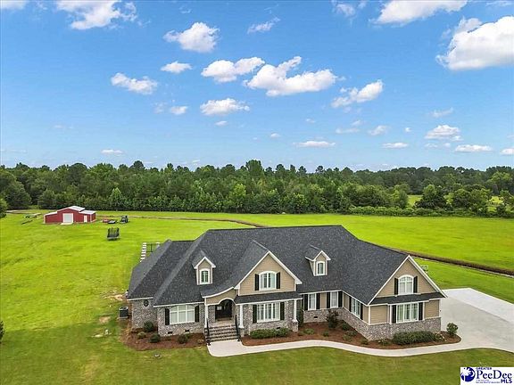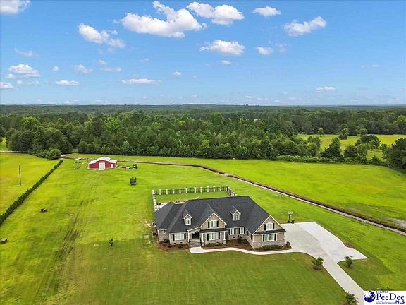 This gorgeous home was built in 2019 on a little over 10 acres. No expenses were spared in the design, details and amenities. As you drive through the private gated entrance you notice the privacy of this property and the beautiful architectural details of this large brick home. The great room has hardwood floors, a large stone fireplace with craftsman style beams high above head in the cathedral ceilings. This rare floor plan offers an en suite with each oversized bedroom on the main floor of the home. The kitchen is an open concept with a hearth room that has a bricked fireplace with gas logs and sitting area. It has a large island with exotic granite countertops, high end stainless steel appliances, a gas range, and massive walk-in butlers pantry. The master suite has a trey ceiling feature and access to the screened back porch. The master bathroom comes with a free standing tub, tiled shower, lots of storage cabinet space, and superior walk-in closet. Each bedroom has its own walk-in closet and full bathroom with modern decorative tile flooring. The bonus room is a full movie theater room. Outdoors you will find a stamped concrete large screened in porch that over looks the fenced in salt water in ground pool. The pool features a water slide, large decking for sunbathing and entertaining. Beyond the fenced pool area is a massive 48x60 red barn that's wired and great for storage or entertaining. Book your appointment today to see this gorgeous stately home.