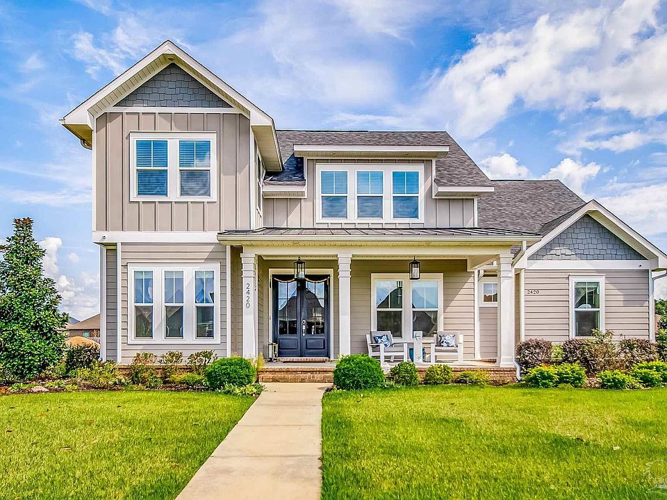 This executive 4-bedroom, 3.5-bathroom Craftsman home is one you will want to see! Inside, you will enjoy 12-foot ceilings, as well as tray ceilings in the living room and master bedroom. Not to mention solid core 8-foot interior doors. The gourmet kitchen looks like its straight out of a magazine! Pictures don't do it justice! It boasts custom cabinetry, shiplap accents, a farmhouse sink, granite countertops, a five-burner gas range, and a brand new custom vent hood, and a large walk-in pantry. The spacious master suite offers alot of natural light including private patio access, recessed speakers, and a luxurious bathroom with a designer walk-in closet, tiled walk-in shower with body sprayers and rainfall showerhead, a free-standing soaking tub, and a double vanity. The great room features a gas stone fireplace, built in surround sound speakers, tray ceiling, wood-look tile flooring, and several large brand new glass doors leading to the expansive back porch with built-in outdoor kitchen, fireplace, with plenty of room for a pool or expanded outdoor space. The home is wired for a custom home theater system and even includes a state-of-the-art digital security system controlled by a master remote. This home includes a downstairs guest suite, perfect for a mother-in-law suite or spare bedroom. Upgrades include an upgraded Daikin HVAC system with a transferable 10-year warranty, upgraded irrigation system, and an advanced speaker system with smart home features. The lush Zoysia lawn adds curb appeal, and the rear-entry two-car garage provides private access. Located in a gated neighborhood with brand new amenities including a clubhouse, pool, basketball court, pickleball court, and more! This home recently appraised at $725,000 which means you have instant equity! Schedule your tour today to take advantage of this amazing home at an amazing price!