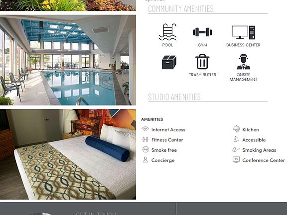 - Exterior features: 24/7 Front desk, Availability 24 Hours, Building-wide Wireless, Business Center, Cable included in rent, Conference Room, Electricity included in rent, Fitness room, Flexible Lease, Free parking, Garbage included in rent, Gas included in rent, Heating included in rent, Heating: Electric, Heating: Gas, High-speed Internet Ready, Hot water included in rent, Housekeeping, Internet included in rent, Night Patrol, Package Receiving, Party Room, Sewage included in rent, Spanish Speaking Staff, Utilities Included, Water included in rent