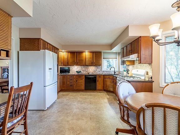 Off the beaten path with gorgeous golf course views in every direction. Mature trees provide the perfect amount of shade and privacy. Very well maintained property with 3 bedrooms, an office (could be 4th bedroom), 3 full bathrooms and a total of 3,160 Sq Ft. Living room and dining room features new luxury vinyl plank flooring and vaulted ceilings with skylights. The living room boasts a remote controlled gas fireplace and the dining room provides access to the new backyard deck with outdoor bar. Large kitchen and breakfast area with quartz countertops, natural stone backsplash, bay window, built-in desk, and pull-out shelves. Newer vinyl flooring flows from the kitchen through the foyer and into the hallway. Two windows over the kitchen sink are newer and have remote control blinds. Three bedrooms and 2 full bathrooms on the main level. Primary suite was completely updated in June of 2024 which includes new carpet, paint, walk-in closet, walk-in tile shower with glass door, luxury vinyl plank floor, vanity with quartz top and new fixtures. Family room and rec room with wet bar has 2 sliding doors that walk out to a partially covered paver brick patio and a peaceful backyard. The office could be a 4th bedroom. Full bathroom in the lower level has a walk-in tile shower with glass door, tile flooring and vanity with quartz top. An unfinished storage room, utility room, laundry room and heated golf cart garage complete the lower level. All kitchen appliances, washer, dryer, extra microwave & refrigerator in the wet bar are included. See the list of updates, facts and features in the associated documents. Tax amount is calculated without the Disabled Veterans Exemption.