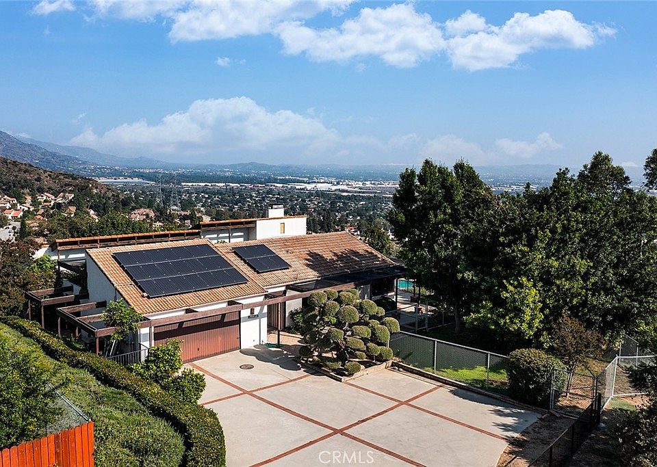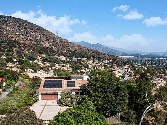 Great opportunity to live in a single level custom built home located on top of the world with panoramic unobstructed city light and mountain views. Situated on a large lot in a very private setting at the end of a long driveway. This home features an open floor plan, hardwood floors, many windows providing lots of natural light, two wood burning fireplaces, vaulted wood beamed ceilings, and a bonus room. Additional features include a spacious court yard, fenced in sparkling pool, deck and patio areas that are perfect for entertaining. This home is in need of updating providing endless possibilities to create the home of your dreams.