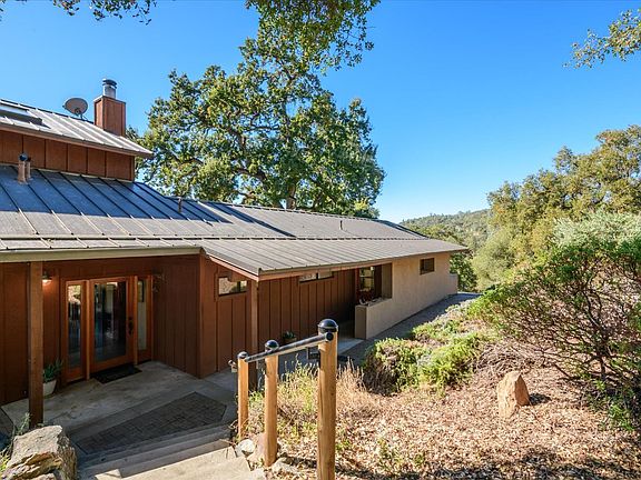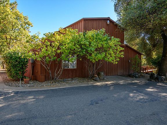Like no other, Hideaway Ranch is a totally private artisan ranch with views located in a gorgeous country setting! A turn-key ranching operation or simply an incredible place to enjoy life as a full or part-time resident, this architecturally appealing home, barn, charming guest house and grounds create a total vacation feel. Southern exposure, ancient oaks, and fantastic views across the Cosumnes River Canyon. Aesthetically pleasing, Midcentury style redwood board and batt exterior on home and barn.  The uniform style and color on all structures, along with no power poles or wires nearby, create a sense of peace.  Beautiful main home, barn/shop with office, hay barn, stable, a fabulous garden, attractive hardscape.  Many places to wander and experience total silence. Neighbors cannot be seen, and they cannot see you; children can connect with nature in unlimited ways.   Full fencing, cross-fencing, and many gates.  Seller has a USDA grant that provides funds to maintain the land.  Cattle graze on the property via an arrangement with a neighbor (cows are not owned by the seller).  Located in an area rich in history that has not lost that old-timey feel with livestock, fruit orchards, scenic barns, and natural beauty.  Lovingly improved and maintained.  Truly a hidden gem.