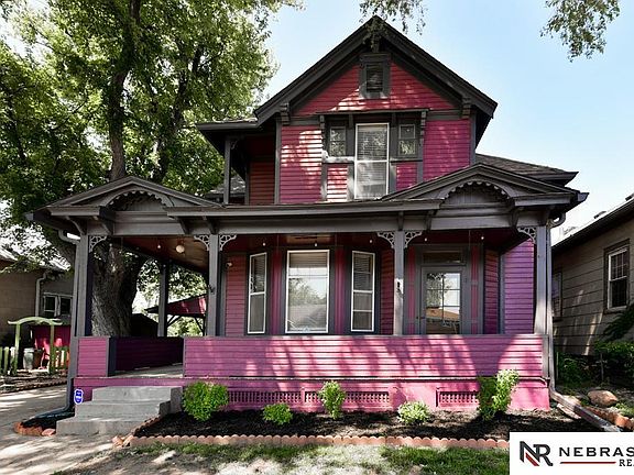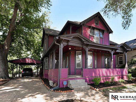 Step back in time w/ this stunning Queen Anne Victorian home on one of Omaha’s cobblestone streets, brimming w/ details that honor the character and charm of a bygone era- but also updated in all the ways that make it the perfect balance of old and new! Gorgeous period details like ornate doorknobs, 10 ft ceilings w/ transom windows above doorways, elegant original trim, expansive front porch, pocket doors, clawfoot bathtub, HW floors, and built ins set a stately atmosphere. Your enjoyment will be accentuated by all the updates that have been done, incl all new ext paint chosen to reflect the era of the home, new HVAC (2022), and updated kitchen w/ granite counters, newer SS appliances, gas stove, brick accent. FIVE bedrooms here, plus upper level loft area that could serve as additional living room. Basement with partial finish offers copious storage and a wine cellar! Oversized deck, fenced and shaded yard, carport and well sized shed round out the reasons not to miss this one!