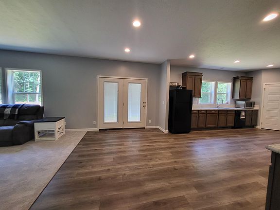 Spacious 2020 Ranch style home nestled on 8 wooded acres. Home boasts 9 foot ceilings on the main level and basement with a 3 stall attached garage. Open floor plan with 4 bedrooms, 3 full baths and vinyl plank flooring. Primary en-suite with bonus living/exercise/craft room. Extras include; mud room with large cubby's, tiny house play areas, tiled dog wash and kennels, basement with egress window and extra storage throughout. Circle driveway with lots of extra parking to store your camper, boats and toys. Close to schools, shopping and US 31 for easy commute. There is an additional adjoining 5 acre wooded lot for sale separatly with Black Creek running through it. Agent is related to the seller. See this home today and make it yours!