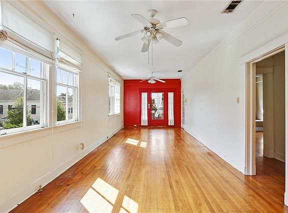 Spacious second-floor apartment in a classic Fontainebleau duplex. This 3-bedroom home features a large great room including living and dining areas, gorgeous wood floors throughout, and tons of natural light. Enjoy morning coffee or evening cocktails on your private balcony. Additional amenities include central air and heat, in-unit washer and dryer, off-street parking, and access to a large, fenced-in backyard perfect for outdoor entertaining or relaxing. Unbeatable location just a short stroll to the streetcar line, Palmer Park and the art market, Robert's Fresh Market, and more.