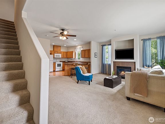 Welcome to Spyglass in Dupont! Enjoy low-maintenance living in this beautifully maintained, one-owner condo—perfect for an active lifestyle where you can truly "lock and leave." Ideally located just minutes from JBLM, this home offers convenience, while the surrounding parks, hiking trails, golf courses, and charming small-town atmosphere provide the perfect balance of relaxation and recreation. The main level features an open-concept w/soaring ceilings, creating a bright & inviting space. The kitchen has granite countertops, pantry & eating space - and a cozy gas fireplace to set the mood. Finished to perfection with maple cabinetry & maple hardwoods. Private 2 car garage, A/C and much more!