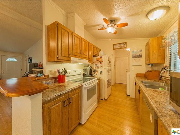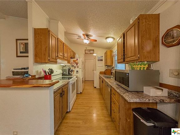 Lovely 3/2 manufactured home on almost half acre of well maintained and beautifully manicured grass with elm and pecan trees. Home is located across the street from river front homes. ALL appliances convey! Oversized 24x20 carport. 10x10 storage building to convey with sale includes a shallow well with gardening pump to water the yard. One hour notice required for showings as owners have small children. PHOTOS COMING SOON!