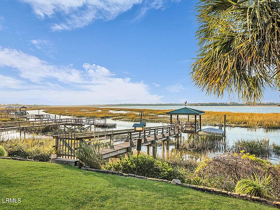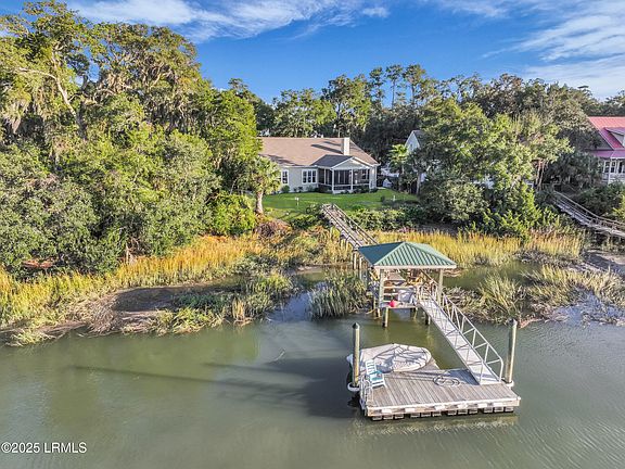 Perched on a .3-acre bluff with approximately 74 feet of direct water frontage, the property offers quick access to the Beaufort River from a private short dock complete with floater, covered pierhead and full utilities, including water and electricity.