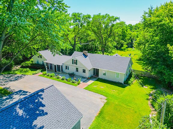 Have you ever dreamed about having almost 2 acres of picturesque land? Thinking of building your dream house in unincorporated Mundelein? This is your opportunity. This very private and forested property offers a perfect blend of tranquility and convenience, with close proximity to Fremont Schools, Mundelein HS, and the forest preserve, providing access to walking and bike paths. The home itself needs work, but has the potential to be a charming and modern ranch offering convenient one-level living. The 3BD ranch on the property is modest, but it exudes character with a nice layout that includes 3 good sized bedrooms, a large living room with a cozy fireplace, and large windows. The exterior features a generous driveway, HUGE OVERSIZED DETACHED 2-CAR GARAGE + 2 SHEDS + A WORKSHOP -- mature trees, and lush greenery, creating a serene environment perfect for relaxation and outdoor activities. Enjoy the best of both worlds - a peaceful retreat that's still close to schools, parks, and all the amenities Mundelein has to offer. Check out the Plat of Survey for Land Details!