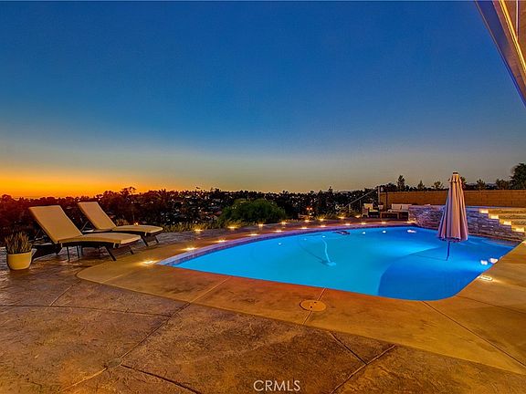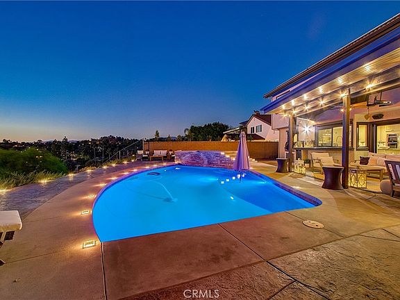 Perched atop a serene hillside at the end of a cul-de-sac, this 2,923 Sq ft Mission Viejo residence combines endless panoramic hillside views with gentle breezes to offer California living at its very best. The backyard transforms into your very own private retreat to relax and entertain: sparkling salt water pool, in-ground spa with waterfall feature, built-in barbeque, custom pergola with built-in fans, and completed with vivid sunset evening views. The enviable indoor/outdoor living and entertaining areas create an atmosphere of unparalleled luxury, yet quenches your desire for a functional floor plan.