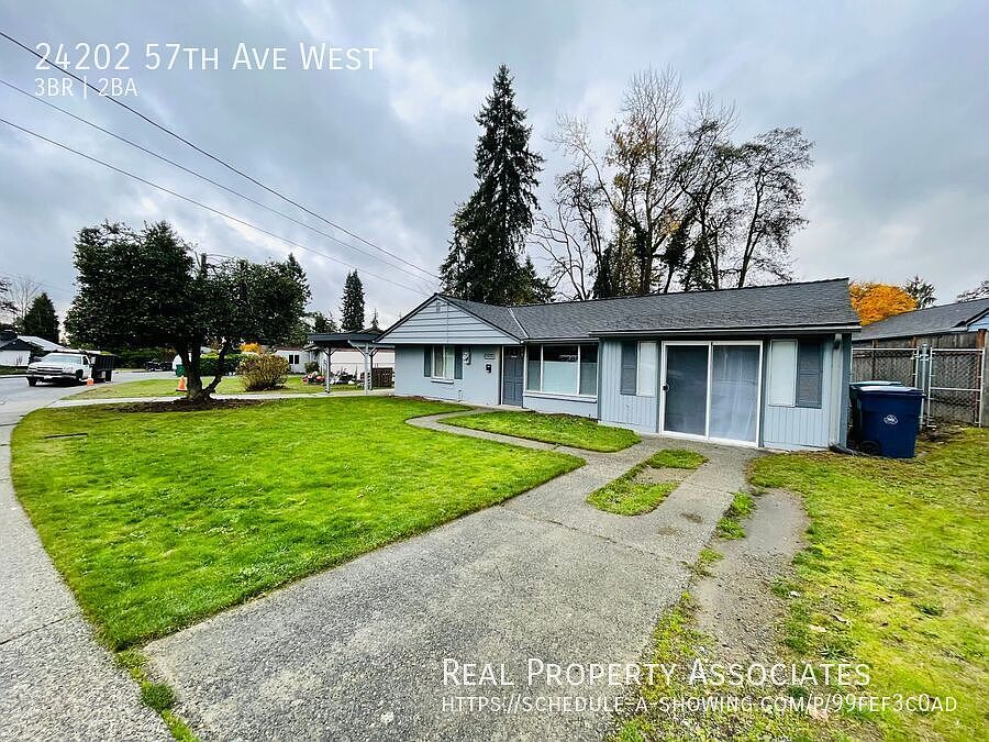 Welcome to your new home in the convenient Mountlake Terrace. This updated 3 bed, 2 bath, Rambler has new LVP flooring, a fresh coat of paint, updated kitchen w/SS appliances, fully fenced backyard w/shed, carport and off street parking. The primary bedroom has an attached bathroom. Full size W/D. The tenant is responsible for all utilities and yard maintenance. Heat is Electric Furnace. The location is unbeatable, with easy access to I-5, and Light rail station. Move in with just first month's rent and a deposit (if qualified) Security deposit is $2,000 ($500 is non refundable cleaning fee). Move in funds are due upon lease signing. Don't miss this opportunity to live in a beautiful, convenient location. Lease to expire 3/31/27 (longer than 1 year lease to start). Sorry NO Cats (Owner is allergic). Dog ok on CBC basis and $500 pet fee paid (2 max allowed).