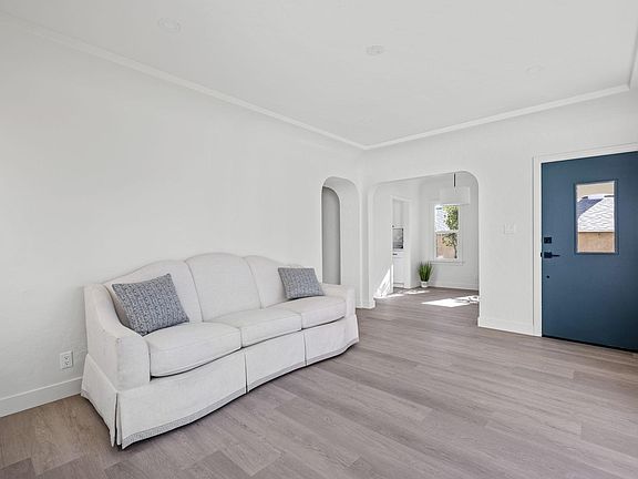 Spanish cottage recently refurbished with new kitchen cabinets, quartz countertops, new fixtures and appliances. Washer/Dryer included. Bath has also been remodeled. Wide plank laminate flooring throughout. Fresh paint inside and out. Situated at the end of a quiet cul de sac. large front yard and back yard shared with a jr. additional dwelling and second dwelling unit in the back. Driveway parking and street parking. Owners pays for water and trash. Tenant(s) pays for electric and gas. Multiple car parking.