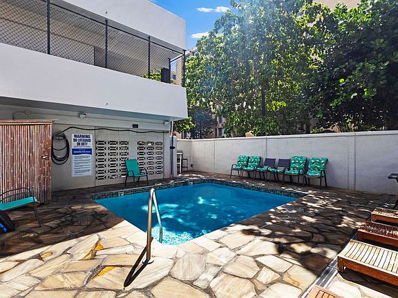 Furnished 18th-floor studio at Ala Wai Townhouses in Waikiki! Just one block from the International Marketplace, this move-in-ready unit makes life easybring your toothbrush and settle in. Enjoy access to the community pool, with laundry facilities in the building. No parking included but who needs a car when you can walk to everything? Perfectly located for city living, dining, shopping, and the beach. Building includes storage for surfboards and is very close to a Biki bike station.