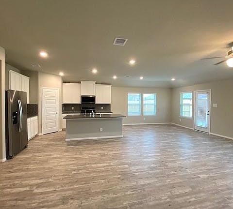 Energy-efficient 1 story home with 4 bedrooms and 3 full bathrooms, lots of natural light and Open floor design. Carpet in all bedrooms will be upgraded to laminate flooring before move-in. Bay window and vaulted ceiling in primary bedroom, spacious walk in closet, and separate shower & tub in master bath. Chef's Kitchen w/ Quartz counter tops, Stainless Steel appliances with gas range. Refrigerator, Washer and Dryer are included. Covered patio, innovative features such as Polyurethane Spray Foam insulation & tankless water heater save money on electricity. Nearby, the rec center offers amenities like fitness classes, youth sports, and a swimming pool, dog park. Island Amenity Village includes Lazy River and White Sand Beach, Splash Pad and Playground, Basketball, Tennis, Pickleball and Bocce Ball Court, Resort-Style Pool and Clubhouse.