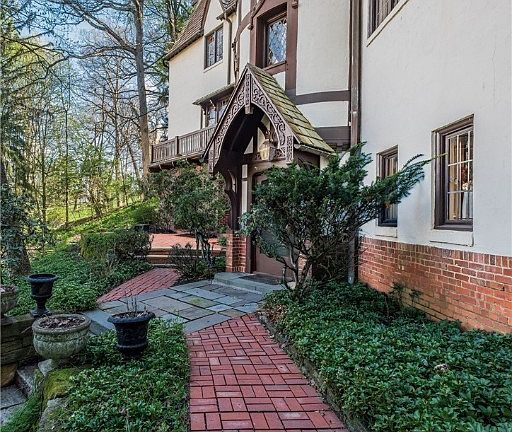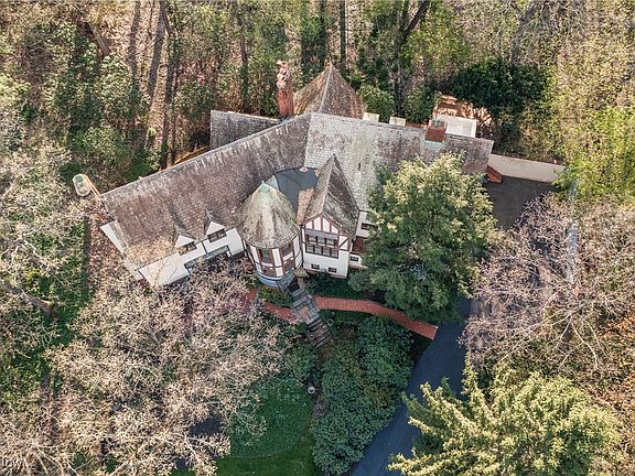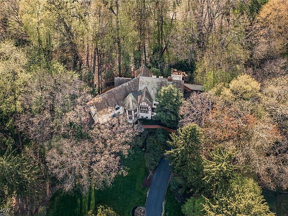 Welcome to this architect deigned and built authentic English Tudor style home in the heart of Hills and Dales Village. This Architectural treasure is perched back off the road and soars 4 stories high with views of the beautiful neighborhood from every angle. This beauty was designed by Cleveland architect Abram Garfield and the original workmanship and details have been lovingly preserved throughout including the impressive 3 story sweeping circular Stone staircase, original light fixtures, built in cabinetry, 6 Fireplaces, slate roof and leaded glass windows (with newer storms). The main level boasts a cozy Family room that walks out through french doors to the front patio and includes a wet bar for entertaining. Formal and utility half baths and a large back mudroom near the 3 car attached garage. Ascend the majestic stone staircase to the 2nd floor main living area and you are surrounded by grand living areas, walls of windows/french doors (lead to back patio area) and comfortable living spaces. The Grand Parlor and Formal Dining spaces are meant for large gatherings with guests and family. The original wood paneled Library has a cozy wood burning fireplace and ample built in bookcases and cabinets. Enjoy your morning cup of tea or coffee in the bright Morning room that boasts the original terracotta tile floor and walks out to 2nd floor balcony. The modernized Kitchen is spacious with a Viking gas oven/range, ample storage, everyday Dining space and home management area. Perfectly placed between the Kitchen and Dining area is the originally appointed Butlers pantry that has built in china/linen cabinets and an additional prep sink. The 3rd and 4th floors offer a total of 9 bedrooms (1 is currently used as a laundry room), 4 full bathrooms and a Bonus Room that could be used as additional storage or additional living space. This is an opportunity to own a piece of history in one of the best known homes in Hills and Dales Village.