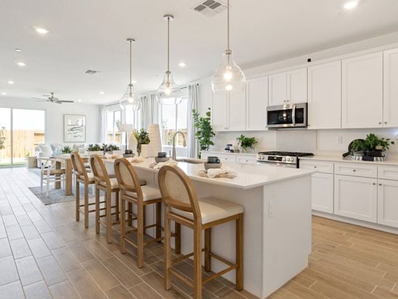 Welcome to your brand new home in a most desirable community, a stylish single-level residence with a modern open floorplan that seamlessly integrates the Great Room, kitchen, and dining area, perfect for both relaxing and entertaining. The owner's suite is your personal sanctuary, complete with a tranquil bedroom, spa-inspired bathroom, and a spacious walk-in closet. Two additional bedrooms are tucked away at the back of the home for added privacy, while a versatile fourth bedroom near the entryway offers flexibility for a home office or guest room. Solar panels will help offset monthly electricity bill (with reasonable usage).